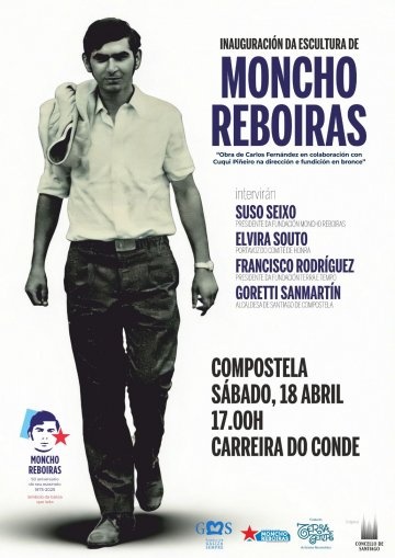 A rúa Carreira do Conde de Santiago de Compostela acollerá o 18 de abril o acto de inauguración da escultura en bronce e a tamaño real de Moncho Reboiras promovida polas Fundacións Moncho Reboiras, Terra e Tempo e Galiza Sempre.